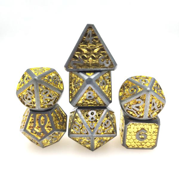 Trade Card Luminous Dice Dice Set For DND Or RPG Polyhedral Metal Gold Yellow Images |