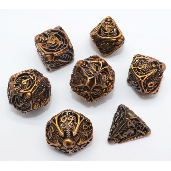 Complete set of seven sharp-edged polyhedral dice, hand poured, polished and sanded to extraordinary fineness.Hand-made, hand-sanded, hand-polished sharp-edged dice.Seven polyhedral dice.Hand-made and hand-engraved. Recommended for use in dice trays.